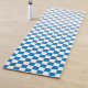 Modernes Licht zu dunkelblauem Farbverlauf und weißes, kariertes Muster verleihen Ihrem Yoga-Training einen coolen Akzent. Die farbigen Quadrate wechseln allmählich von blass zu himmelblau neben den weißen Quadraten. Klicken Sie auf den Link "Rocklawn Arts", um das geometrische Ombré-Design auf anderen Artikeln zu sehen. © Claire E. Skinner, Alle Rechte vorbehalten.