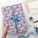 Lichtblau, rotes Ankermuster Geschenkpapier