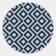 Dieses fett hellblaue und schwarze geometrische Muster ist ein originelles Dekorationsdesign. Blütenblaue Diamanten mit schwarzen Rändern sind umgeben von Baby-blauen Mäandern, die sich um sie drehen. Schwarze Zickzacksäcke trennen die kurvenförmigen, hellblauen Wege und verdichteten Diamanten. Digitales Bild. Copyright © 2014 Claire E. Skinner. Alle Rechte vorbehalten.