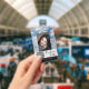 Ein einzigartiges Design mit einem blauen Himmel Wolken Grafik, Foto, Strichcode und Logo Vorlage. Passen Sie dieses Abzeichen einfach an Ihre Marke an. - mit Zaubershirts ausgelegt