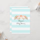 Personalisierte Baby Dusche Einladungen in hellblau-weiß Streifen Muster mit pfirsichrosa Aquarell Vintage Blume. Ideal für eine Frühjahr- oder Sommerdusche.