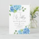 Elegante Blumenhochzeit in einer Einladung. Moderne botanische Hochzeitseinladung mit Kalligrafieschrift und handgemalten Hydrangea-Blume in hellblau mit Details und QR-Code-UAWG im Hintergrund. Sie können die Formulierung, den Stil, die Farbe und die Größe des Schriftartes vor und hinter der Einladung personalisieren. Bitte kontaktieren Sie mich für passende Artikel.