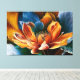 Eine lebhafte Blume entfaltet sich in einem farbenprächtigen Schauspiel, in dem feurige orangefarbene und goldene Blütenblätter mit coolen Blautönen tanzen. Das Kunstwerk strahlt Energie, Delikatesse und Erneuerung aus, als ob die Natur ihre Poesie in jedem Detail offenbart.