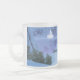 Eine 3D-Fantasielandschaft voller schillernder Schnee und zauberhafter Lichter. Eine Reihe von silbernen Glühlampen beleuchtet den Weg durch einen schneebedeckten Bergpass, der von steilen Felsklippen eingezäunt ist. Der schneebedeckte Pfad wird von dunklen Tannenbäumen eingezäunt. Auf der anderen Seite der Kluft erwartet der verzauberte Reisende auf seiner Reise nach Märyland ein durchsichtig leuchtendes Märchenschloss.