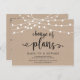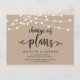 Dies ist die moderne minimale Rustic Kraft String Lichter, in Black Schriftart, Wedding Party Einladung Rescheduled (verschoben / verschoben) Postcard (Änderung des Datums) . Es ist der perfekte Ort, um Ihre Freunde und die Familie über den Zeitplan zu informieren.