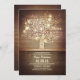 Charmante rustikale Brautdusche Einladung mit alten geschnitzten Bäumen und hängenden Lichterketten. Romantisches Holz.