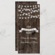 Lichterfolge und Vintages Banner auf alten Holzsommer Hochzeitskarte mit weißem Banner mit brauner Kontur auf altbraunem Holzhintergrund. Dieses moderne und trendige Hochzeitsdesign aus Holz mit Vintagen Elementen ist Teil eines Hochzeitsgeschehens oder einer Hochzeitskollektion. Es ist vollständig anpassbar und eignet sich ideal für einen Western in der Sommernacht im Freien. Beachten Sie, dass es nicht nur gedruckte Bilder aus echtem Holz gibt.
