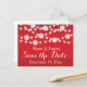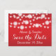 Lichterfolge und weiße Schneeflocken - Hochzeitsfeier für den Winter Save the Date Postkarte mit weißer, blinkender Leuchtfolge mit weißen Schneeflocken auf rotem Gradientenhintergrund. Dieses moderne und trendige Hochzeitsdesign ist Teil eines Hochzeitsgeschehens oder einer Hochzeitskollektion, ist vollständig anpassbar und eignet sich ideal für eine Weihnachtsfeier im Winter. Einige Elemente mit freundlicher Genehmigung von vectorportal.com.