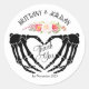 Hellgotische Skeletthandschuhe mit klassischem Rundaufkleber. © Dunkles Herz Wünsche. Dieser Wedding Sticker hat dunkle Skeletthändler, da er ein starkes Design-Element ist, um ihm den köstlichen Gotischen Geschmack zu geben, aber ist noch feminin in der Natur mit allen schönen Blume. Mit dem Design Tool können Sie diesen Sticker für Ihre eigene Hochzeit personalisieren. Klicken Sie einfach auf Dieses Design anpassen. Wenn Sie andere Hochzeitsartikel oder Schreibwaren kaufen möchten, die in diesem Set enthalten sind, finden Sie diese hier: https://www.zazzle.com/collections/light_gothic_skeleton_hands_wedding_set-119208151725658267?rf=238387807314068901
