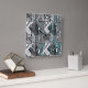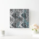 Lichtgrau geometrisch gedruckt. Fußbodenmatte Quadratische Wanduhr