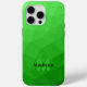 Hellgrünes geometrisches Maschenmuster Monogram iPhone 15 Case. Personalisieren Sie Ihre individuelle Eingabe und Ihren eigenen Namen. Dreieck geometrische Masche mit Licht bis dunkelgrüne Ober-Farbverlauf.