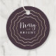 Diese eleganten und festlichen Geschenktafeln wurden entworfen, um sich mit unserer schicken Bright Circle Kollektion abzustimmen. "Merry and bright" erscheint in weißer Schrift auf einem winterbordeauxfarbenen Hintergrund, umgeben von einem dreifachen geometrischen Rahmen in Imitaten goldenen Folie. Passen Sie den Rücken mit Ihrem Namen oder Ihrer persönlichen Nachricht an.