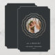 Freuen Sie sich auf die Weihnachtsfotos dieser schicken und minimalistischen Weihnachtskarten mit Ihrem Lieblingsfoto, das von einem dünnen geometrischen Rahmen in Imitaten mit Goldfolie auf einem schwarzen Holzkohlehintergrund gerahmt ist. "Alle sind hell" erscheint unterhalb in weißer Serife und kursiver Schrift. Personalisieren Sie Ihre persönliche Begrüßung und Namen unten, und fügen Sie drei zusätzliche Fotos auf der Rückseite, zusammen mit mehr benutzerdefinierten Text für einzelne Namen oder eine persönliche Nachricht. Eine elegante Urlaubskarte mit einer modernen und minimalistischen Ästhetik, die Ihr Lieblingsglanz des Fotos lasse.