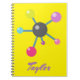 Ein Notizbuch mit gelbem Hintergrund. Dieses Molekül enthält bunte Atome, die sich in einer Einheit zusammenfügen. Mit Ihrem Namen in kursiv lila Schriftart geschrieben, anpassen Sie Ihre noch heute! Clipart: MUJKA https://www.etsy.com/shop/MUJKA