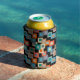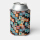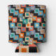 Diese kann kühler hat eine geometrische Gestaltung der Quadrate innerhalb Quadrate in helleren Tönen von blau, aquamarin, orange, tan, off-weiß, Mango und grau auf einem Feld von schwarz.