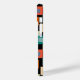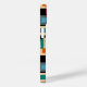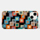 Dieses Handy Gehäuse hat eine geometrische Gestaltung von Quadraten in helleren Tönen von Blau, aquamarin, Orange, Bräune, Off-Weiß, Mango und Grau auf einem Feld von schwarz.