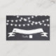 Lichterfolge und Vintages Banner auf der Tafel Sommer Hochzeitssitzplatz Platzkarte mit weißen bunten Lichterketten auf der Oberseite und einem Vintagen weißen Banner mit schwarzer Kontur auf Kalkboard oder schwarzer Tafel Hintergrund. Dieses moderne und trendige Hochzeitsdesign mit Vintagen Elementen ist Teil eines Hochzeitsgeschehens oder einer Hochzeitskollektion. Es ist vollständig anpassbar und eignet sich ideal für eine rustikale Hochzeitsfeier im Freien.