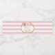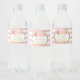 Maßgeschneidertes Flaschenlabel in hellrosa und weiße Streifen-Muster mit hellrot-rosa Vintagen Aquarellfarben-Blume und Goldrahmen. Kann für jeden Anlass angepasst werden, ideal für Brautpartys, Hochzeiten, Babyduschen und Geburtstagsfeiern.