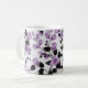 Dies ist eine Kaffeemaschine mit einer hellen Tasse, lila Blumenmuster und Design. Es hat einen hellen Hintergrund.