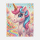 Le Personnage : Une licorne au corps entièrement recouvert de paillettes roses scintillantes. Sa crinière et sa queue sont un mélange dynamique de rose fuchsia et de bleu azur. Elle possède une corne dorée torsadée et des sabots qui ressemblent à des chocolats fondants.