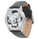 Uhr, Klassische Damenuhr mit schwarzen Lederarmband