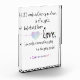 "Wenn ich in den Zungen von Männern oder Engeln spreche, aber keine Liebe habe, bin ich nur ein knallendes Gong oder ein verklemmendes Cymbal." Dies sind die Worte des Apostels Paulus in 1 Korinther 13:1. Um es in den heutigen Worten auszudrücken: Es ist wie weißes Rauschen. Ein Herz voller Liebe triumphiert über endlose Worte. Es spielt keine Rolle, wie laut, wie richtig, oder wie mächtig Ihre Worte oder Handlungen sind. Wenn Sie nicht voll von Liebe sind, werden Sie niemanden erreichen, der Ihre Worte oder Taten hat. Es ist nicht so erfolgreich, gebildet oder talentiert wie wir sind, die andere dazu will, bei uns zu sein. Es liegt einfach in unserer Fähigkeit, sie Liebe. Egal ob Mama, Papa, Lehrer, Manager, Pastor, Anführer - Ihre Einflussbemühungen werden ohne Liebe nicht fruchtbar sein. Dieses Wort Kunst besteht aus einem handgeschriebenen Bibelverse, mit einer Schallwelle, die sich in die Form eines Herzens verwandelt. Das volle Farbspektrum innerhalb der Klangwelle und der Bibeladresse trägt zum computerisierten Klangstudio-Kontrast bei und verstärkt das ablenkende Rauschen derjenigen, die sinnlose leere Wörter sprechen oder laut Geräusche machen, nur um von anderen für ihre Bemühungen wahrgenommen zu werden. Denken Sie daran, Liebe deckt auch eine Vielzahl von Sünden ab (aber das ist ein ganz anderer Bibelvers).
