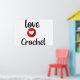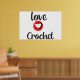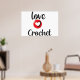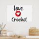 Crochet Poster weiß mit großen schwarzen und roten Buchstaben mit einem Herz. Eine gute Idee für Ihr handwerkliches Zimmer oder Büro. Geschenk Idee für einen Maker, der Lieben zu Häkchen.