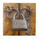 Foto eines vergoldeten, vergoldeten "Liebe-Schloss"-Türschloss aus zwei Ringen einer antiken Tür.
