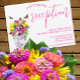 Liebe ist in Blüte! Eine lebendige Hochzeitskollektion mit Blumenstrauß in einer Marmorvase, umgeben von Schmetterlingen und begleitet von Fuchsienscripttypografie.