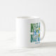 Machen Sie Liebe nicht Krieg Retro Hippie Floral Weltfriedenssymbol hinzufügen Name Personalisierten Kaffeemübel enthält den Text "Macht Liebe nicht Krieg" in der modernen Typografie mit Sonnenblumen und Gänseblumen umgeben eine Welt in einem Friedenszeichen. Personalisiert mit Ihrem Namen, indem Sie den Text in der angegebenen Textbox bearbeiten. Entworfen von ©Evco Studio www.zazzle.com/store/evcostudio