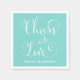 Hochzeitsnapkins verfügen über ein stilvolles Kalligraphieskriptdesign "Cheers to Liebe", das mit einem eigenen, weißen Monogramm-Text versehen ist. Aqua grün / blau Hintergrundfarbe kann geändert werden, um mit Ihrem Hochzeitsfarbschema zu koordinieren.