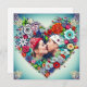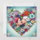 Hübscher aquamariner Hintergrund mit rote Rosen und bunten Blume whimsical Volkskunst Stil Blumenherz. Fügen Sie ein Bild von Ihnen und Ihrem Partner in den personalize Bereich. Ein romantisches Geschenk zum Valentinstag, Weihnachten, Geburtstag, Jubiläum oder zu einem romantischen Anlass.