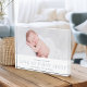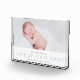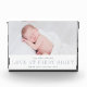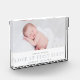 Der schlichte und moderne Baby Foto Keepake Block zeigt Ihr beliebtes horizontal oder landschaftsorientiertes neugeborenes Foto mit einer weißen Band am unteren Rand, die "Liebe auf den ersten Blick" in hellgrau liest, flankiert von dem Namen und den Geburtsstatistiken Ihres kleinen Kindes. Ein modernes und minimales, geschlechtsneutrales Design, das ein perfektes Geschenk für neue Eltern macht.