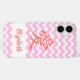 Dieses stilvolle Gehäuse zeigt den japanischen Charakter für "Liebe" in dunkelrosa. In einem rosa Skript-Schriftart können Sie dem Fall ganz einfach Ihren eigenen Namen oder eine kurze Nachricht hinzufügen. Öffnen Sie den Volleditor, um die Zickzack Farbe zu ändern und mit verschiedenen Schriftart-Optionen zu spielen!