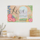 Eine Erinnerung und Herausforderung, den hohen Weg zu gehen, illustriert in einem bunten Blumenthema umrahmt von einem einladenden Tor zum Wohlbefinden. Vollständig gezeichnete und geschriebene Illustration. Text: "Liebe auf jeden Fall"