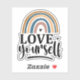 Erhöhen Sie Ihre Selbstpflege und umarmen Sie den Power der Selbst-Liebe mit diesem wunderschönen Aufkleber "Liebe selbst" mit Gehirn und Herz von Sexy Frogs Design. Dieser Aufkleber ist für inspirier und Motivation konzipiert und ist eine tägliche Erinnerung, um Ihrem Wohlbefinden Priorität einzuräumen und Ihr eigenes Selbst zu fördern. Kleben Sie es auf Ihrem Laptop, der Wasserflasche oder dem Journal, um Ihre Umgebung mit Positivität zu versorgen. Mit seinen lebendigen Farben und dem langlebigen Material ist dieser Aufkleber sowohl stilvoll als auch dauerhaft. Gelassen, es dient als visueller Ansporn, Selbstversorgung zu praktizieren, die Liebe zu üben und ein Leben zu schaffen, das von Glück und Erfüllung erfüllt wird