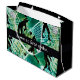 Große, schwarz glänzende Geschenktasche mit Vorder- und Rückseite, mit Silhouetten von Volleyballspielern, Volleyballnetzen und Volleybällen auf künstlerisch blauer, grüner und gelber Unterlage. Das optionale schwarze Band hat den anpassbaren Satz "Liebe bei First Spike". Siehe dazu passende Konfetti, Gefälligkeitskasten, Bevorzugungs-Tag, quadratische Aufkleber und Packpapier. Sehen Sie sich die gesamte Sammlung des Vatertags-Geschenktages in den SPEZIELLEN TOUCHS an. | Abschnitt Gastgeschenke.