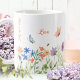 Was gefällt einer Mutter mehr als ein süßes, herzliches und personalisiertes Geschenk ihres Liebsten, das sie jeden Tag benutzen und genießen kann? Diese handbemalten delikaten, romantischen Blume Aquarellgestaltung mit Bienen und Schmetterlingen verzaubern jeden Morgen oder zu anderen Freizeitzeiten des Tages. Natürlich können Sie den Text, die Farbe und den Schriftart nach Ihrem Geschmack ändern. Die Anpassung bei Zazzle macht diese wunderbare Tasse zu einem einzigartigen Geschenk, zum Beispiel für den Muttertag oder nur um Ihre Liebe auszudrücken! Sie können dieses Design auch auf andere Gegenstände Ihrer Wahl übertragen. ©Susanne Sachers