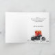 Auf die offene Straße mit einer Hochzeitsgrußkarte für das Ehepaar, die sich um die offene Straße und ihre Fahrräder dreht. Ein grafisch umrissenes Motorrad wird durch ein flammendes Herz vor einem reichen schwarzen grungy Bersthintergrund mit einem oberen und unteren Rand von dünnen Chromflammen hervorgehoben. Das Motorradbild wird im Inneren wiederholt, um den Text hervorzuheben. Der gesamte Text ist vollständig anpassbar. Verfügbar mit passenden Produkten.