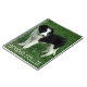 Dieses lustige Kaninchen-Notebook verfügt über einen schwarz-weißen Border Collie Welpen Hund stehend im grünen Gras.