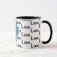 Hübsche Hand - blau gestrichen mit gelber Mittelblume. Liebe wird in schwarzem Skript über Muster geschrieben. Original Artwork © TamiraZDesign.