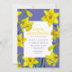 Hübsche Frühlingsgelbe Narzissen dicken Blume Aquarellmalerei und grafische blaue Rahmen Liebe blüht Hochzeitseinladungen. Detaillierte botanische Aquarellkunst in leuchtend warmen Gelb-, Orange-, Weiß-, Frühlinggrün- und lila Frühlingszwiebeln Blumendesign ideal für eine Frühjahrshochzeit. Weitere passende Artikel sind verfügbar. © Original Aquarellkunst und Design von Sarah Trett für www.mylittleedenweddings.com auf Zazzle.