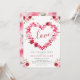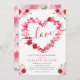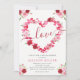 Schöne Liebe Bridal Dusche Einladung mit einem rosa und roten Blumenherz gerahmt mit Rosenbouquets. Dreh unsere süße Einladung zu einem koordinierenden Blumenbacken.
