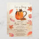 Liebe Braut Herbst Brautparty Vorlage Einladung Sofortdownload, Wasserfarbe Kürbis Zimt Gewürze Becher heißen Schokolade Ahorn Blätter, braune Hintergrund für Herbst Herbst themed Brautparty.