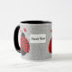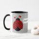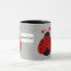 Diese Liebe Bug Tasse enthält einen niedlichen Lovebug auf grauem Herzhintergrund.