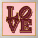 Dieses quadratische, goldfarbene und rosa Poster zeichnet sich durch eine luxuriöse Darstellung der LIEBE aus. Die Buchstaben sind fett bordeauxfarbene Buchstaben, die in Gold umrissen sind. Das Wort LIEBE befindet sich auf einem hübsch rosa Hintergrund mit einem goldenen Glitzer.