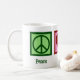 Peace Liebe Chiropraktisches Geschenk. Ein wunderschönes Chiropraktor-Tasse-Geschenk mit einem Friedenszeichen, Herz und jemand, der chiropraktische Medizin an einem Patienten praktiziert, indem er an der Heilung des Muskuloskeletsystems arbeitet.