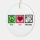 Ein Friedensschild, ein Herz und ein niedlicher dalmatinischer Hund. Peace Liebe Dalmatiner Weihnachtsschmuck.