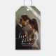 Ein stilvolles und elegantes Hochzeitsgunst-Design mit den Worten "Liebe & Dank" in einem wunderschönen weißen Script-Schriftart. Es bietet Platz für ein individuelles Foto, Namen und das Hochzeitsdatum in einem modernen, weißen Schriftart. Ein perfekter Weg, um Ihrem besonderen Tag eine persönliche Touch hinzuzufügen!