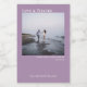 Diese Mini-Weinflaschen-Etiketten zeichnen sich durch ein schlichtes, modernes und minimalistisches Design aus. Ihr Foto ist auf einem lila oder lavendelfarbenen Hintergrund gehalten und mit der Beschriftung "Liebe & Dank" sowie den Namen des Ehepaares und dem Hochzeitstag versehen. Es gibt auch Platz für die Art des Weins oder andere Flascheninhalte. Ideal, um besonderen Gästen zu danken.